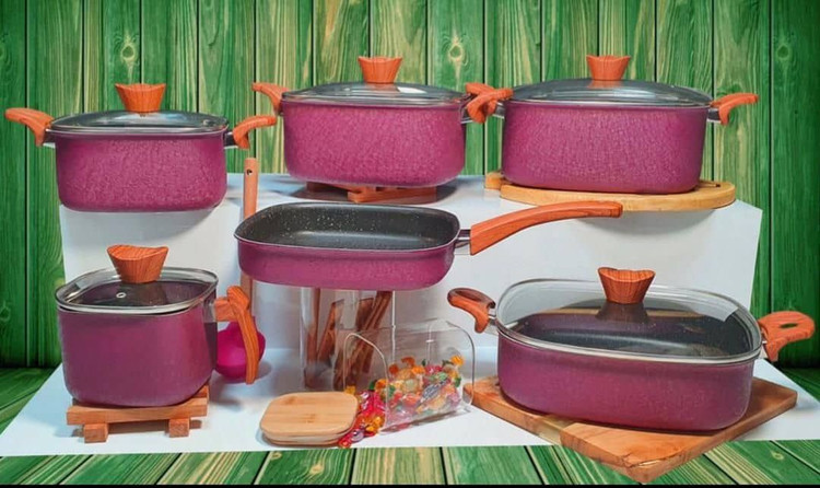 سرویس قابلمه گرانیت *مربع* 😍 ۱۲ پارچه ساخت تُرکیه ✅ رنگ استاتیک کوره ای مخمل سایز قابلمه بزرگ ۳۰ میباشد رنگبندی مختلف